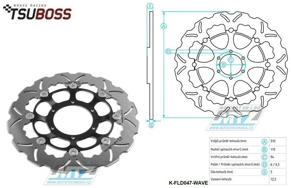 Kotouč brzdový plovovoucí (310/94/6D) kulatý desing - Honda CBR600RR / 03-17+CB1000R / 08-17+CBR1000RR Fireblade / 04-05+CB1300 Superfour / 03-08 K-FLD047-WAVE