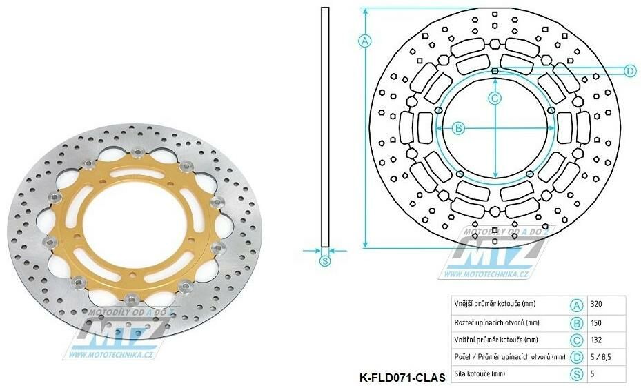 Kotouč brzdový plovovoucí (320/132/5D) kulatý desing - Yamaha YZF R1 + FZ1N+FZ1S Fazer+MT10 + XVS1300 + XV1700 V-max K-FLD071-CLAS