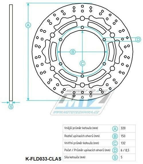 Kotouč brzdový plovoucí (320/132/6D) kulatý desing - Yamaha YZF-R7+XVS950 Midnight Star + FJR1300 K-FLD033-CLAS