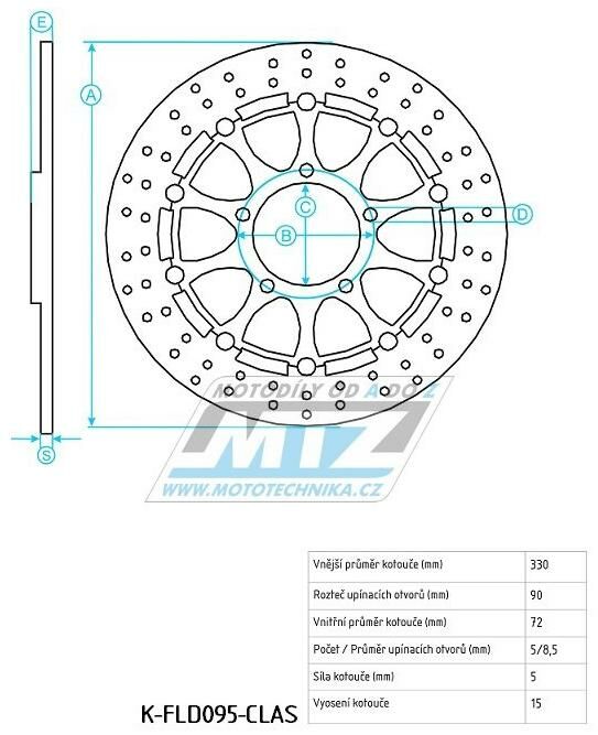 Kotouč brzdový plovovoucí nerezový (330/72/5D) zubatý desing - Ducati 848Evo Corse+1000Desmosedici+1000Panigale+1098 + 1100Streetfighter+1100Panigale + 1198+1200Monster+1299Panigale (k-fld095-wavevodo K-FLD095-WAVE