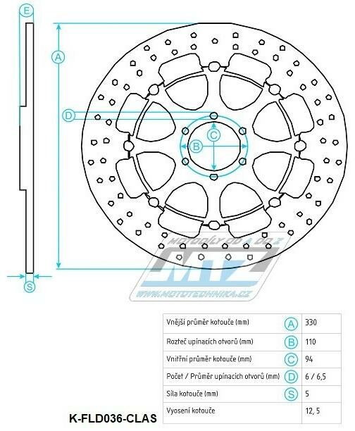 Kotouč brzdový plovovoucí nerezový (330/94/6D) kulatý desing Honda CBR900RR / 01-03 + CBR929RR Fireblade / 00-01 + CBR954RR Fireblade / 02-03 (k-fld036-clas) K-FLD036-CLAS