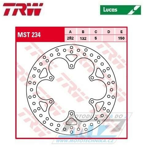 Kotouč brzdový TRW MST234 (282/132/6D) - Yamaha XT600E / 95-03 + XT600K / 94-95 + XTZ660 Tenere / 91-99 + XV750 Virago+XVS1100 DragStar / 03-07 + TZR125+TZR50+TZR80+TDR125 + XP500 Tmax / 01-03 LUMST234