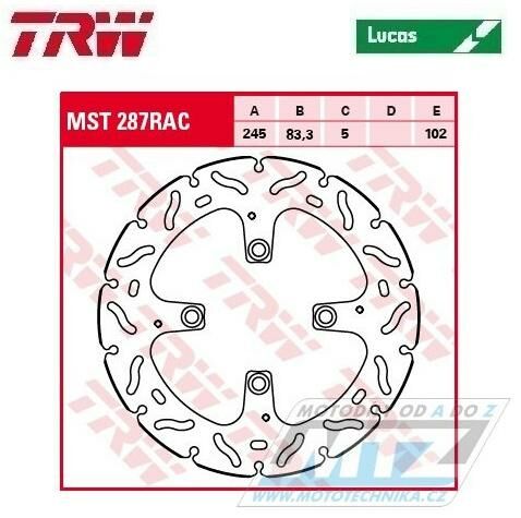 Kotouč brzdový TRW MST287RAC (245/83/4D) - zubatý design - Ducati Hyperstrada939+Hypermotard950 + Panigale1000V4+Panigale1100+Panigale1199 + Monster1200+Multistrada1200 + Multistrada1260+Panigale1299 LUMST287RAC