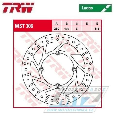 Kotouč brzdový TRW MST306 (250/100/4D) - Kawasaki KDX200+KDX250+KLX250R+KLX300 + KX125 / 89-02 + KX250 / 87-02 + KX500 / 87-04 K-F200LUCLAS