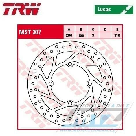 Kotouč brzdový TRW MST307 (250/100/4D) - Kawasaki KX125 / 03-05+KX250 / 03-05+KXF250 / 04-05+KDX125 / 90-99+KDX200 / 95-06+KDX220R / 97-05+KLX250 / 06-10 + Suzuki RMZ250 / 04-06 K-F215LUCLAS