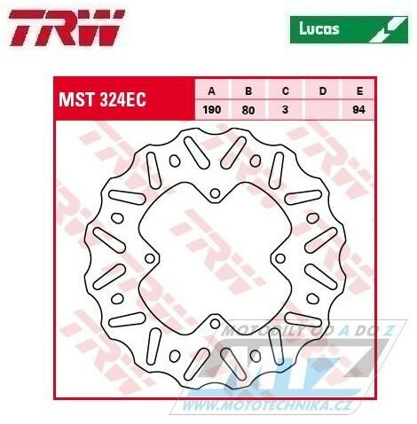 Kotouč brzdový TRW MST324EC (190/80/4D) - Honda CR80 / 92-02 + CR85 / 03-07 + CRF150R / 07-24 K-R150LUEC
