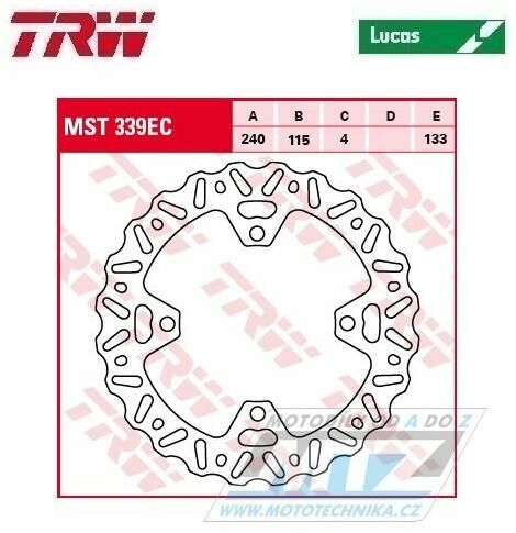 Kotouč brzdový TRW MST339EC (240/115/4D) - zubatý desing - Kawasaki KX125 / 03-08 + KX250 / 03-08 + KXF250 / 04-19+21-24 + KXF450 / 06-18 + KLX450R / 08-21 + Suzuki RMZ250 / 04-06 K-R215LUEC