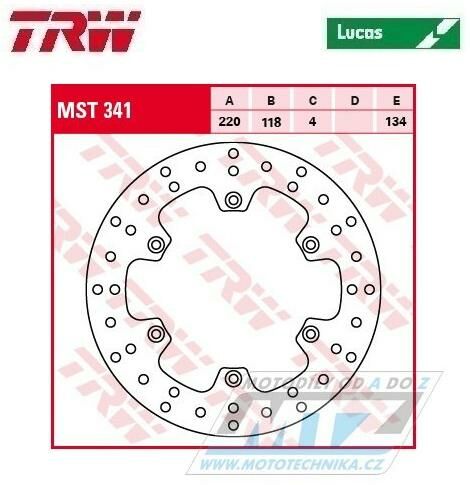 Kotouč brzdový TRW MST341 (220/118/6D) - Suzuki RM125 / 88-98 + RM250 / 87-98 + RMX250 + DRZ400S / 00-20 + DRZ400E / 00-07 K-R400LUCLAS