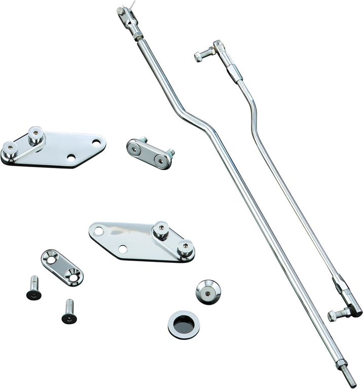 Extension KitMoves the stock Dyna Wide Glide controls a full 3" further forward Kit includes extension plates, countersunk trim plates, linkages and all necessary hardware All components are show-chromed Require only basic hand tools to install