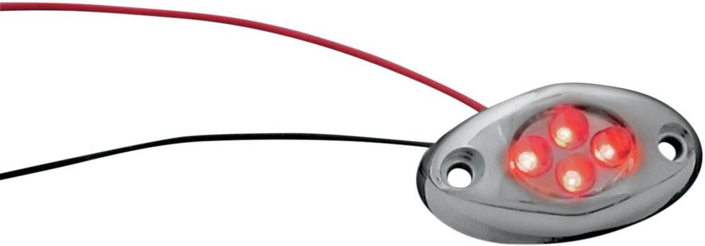 LED Accent LightFour bright LEDs inside a chrome housing Can be secured with screws nebo with double-sided tape, both included Two 6" wire leads can be spliced into any 12V circuit Light housing measures 11/2" L x 3/4" W x 1/2" H Sold each