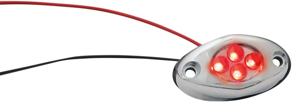 LED Accent LightFour bright LEDs inside a chrome housing Can be secured with screws nebo with double-sided tape, both included Two 6" wire leads can be spliced into any 12V circuit Light housing measures 11/2" L x 3/4" W x 1/2" H Sold each