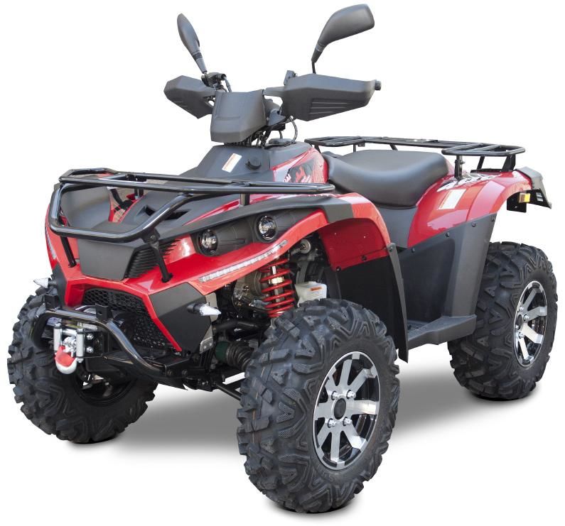 Všestranná užitková čtyřkolka, L7e (EURO 4), kapalinou chlazený jednoválec 352 cm3, automatická převodovka CVTech, L/H/N/R, pohon 2x4 / 4x4, přední zavěšení McPherson, zadní: nezávislá dvojitá A-ramena IRS, 3x hydraulická kotoučová brzda, tažné zařízení, přední ochranný rám, ocelové nosiče vpředu a vzadu, el. naviják 3000 lbs s dálkovým ovládáním, LED světla pro denní svícení, LED blikače, dvojité projektorové světlomety, ALU disky