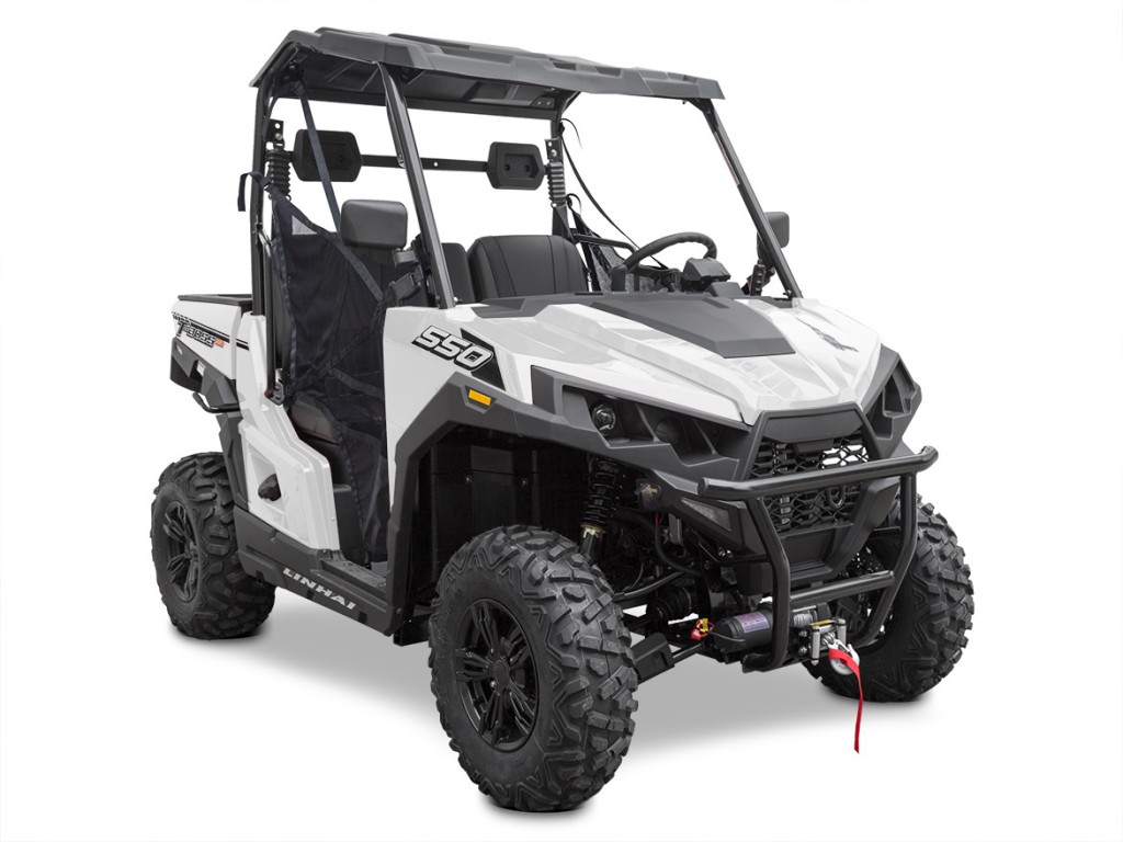 I přes svoji zcela bezkonkurenční cenu nabízí Linhai UTV 550 T-BOSS EFi EPS bohatou výbavu. Již v základu nechybí pevná plastová střecha odolná UV záření, poloviční čelní plexi, masivní přední ochranný rám, bezpečnostní síťky ve dveřích, madla pro spolujezdce, hlavové opěrky, tažné zařízení a elektrický naviják 3000lbs s dálkovým ovládáním.