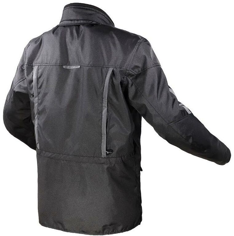 Pánská nepromokavá motocyklová bunda na cestování, do města a každodenní ježdění s nepromokavou prodyšnou membránou, vyjímatelná termovložka, přední a zadní větrací zipy, zip pro spojení bundy s kalhotami, vyjímatelné chrániče loktů a ramen s CE certifikací, kapsa na chránič páteře