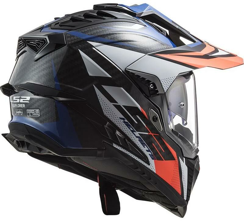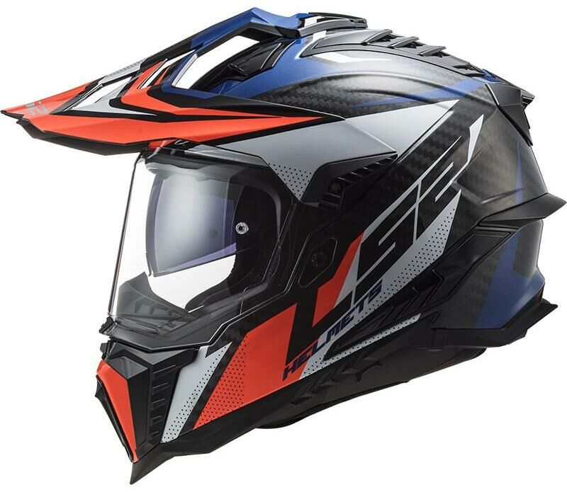 Špičková karbonová enduro helma LS2, integrovaná sluneční clona, čiré opticky přesné Anti-UV plexi s úpravou proti poškrábání, účinné větrání, komfortní antibakteriální antialergický kompletně vyjímatelný a pratelný interiér, rychlé vyjímání lícnic, zapínání dvojitými D-kroužky, 1380g