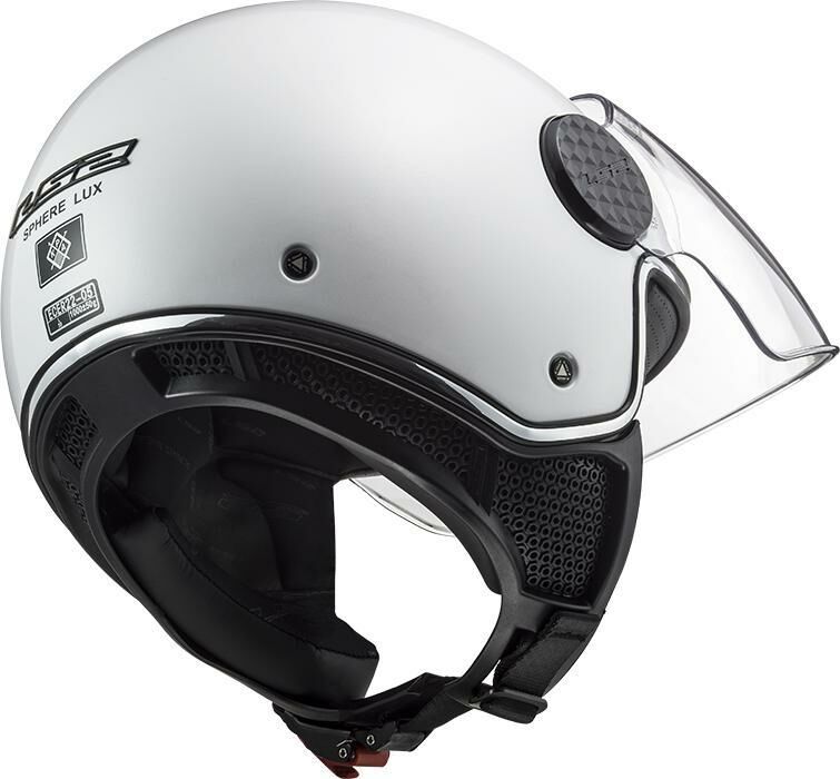 Propracovaná otevřená helma pro skútry, motocykly a čtyřkolky, lehká skořepina z HPTT polykarbonátu, atraktivní lakování s vysokou viditelností, čiré 3D plexi s úpravou proti poškrábání, antialergický hygienický plně vyjímatelný a pratelný interiér, zapínání rychlopřezkou, 1000g