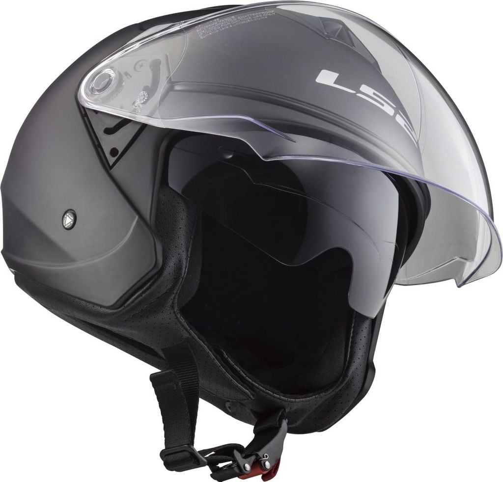 Propracovaná otevřená helma s vysouvací sluneční clonou pro motocykly, skútry a čtyřkolky, lehká skořepina z HPTT polykarbonátu, čiré plexi odolné proti poškrábání a mlžení, antialergický hygienický plně vyjímatelný a pratelný interiér, zapínání rychlopřezkou, hmotnost 1100g