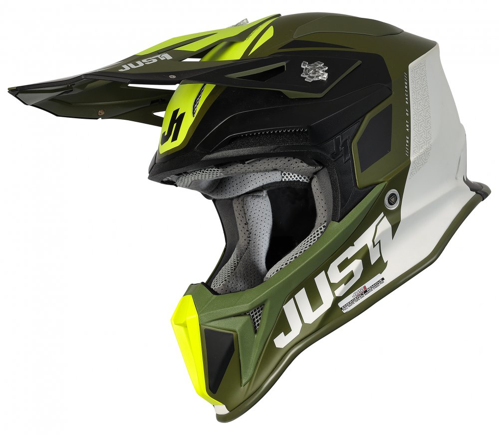 Moto přilba JUST1 J18F + MIPS PULSAR LIMITED EDITION matná army zeleno/černo/bílá