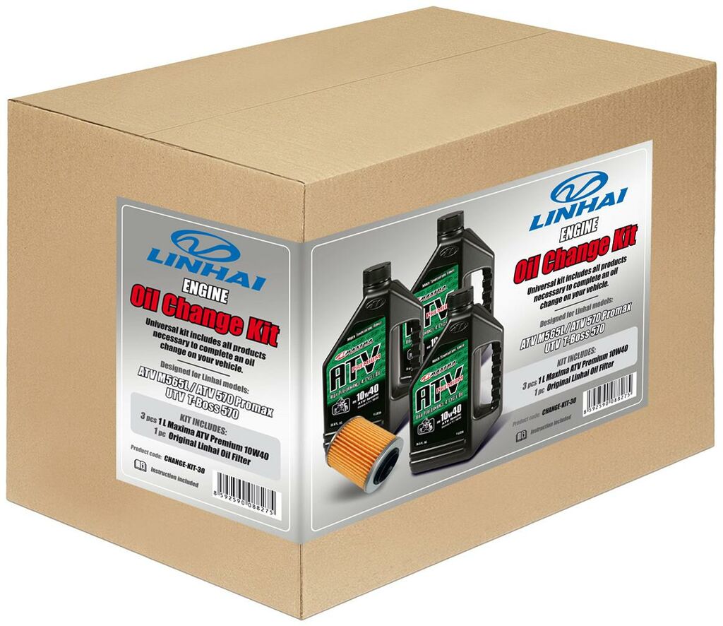 Sada pro snadnou výměnu motorového oleje pro ATV Linhai M565L, M570L, Promax 570/650, UTV T-Boss 570, včetně filtru, 3l oleje a návodu s postupem