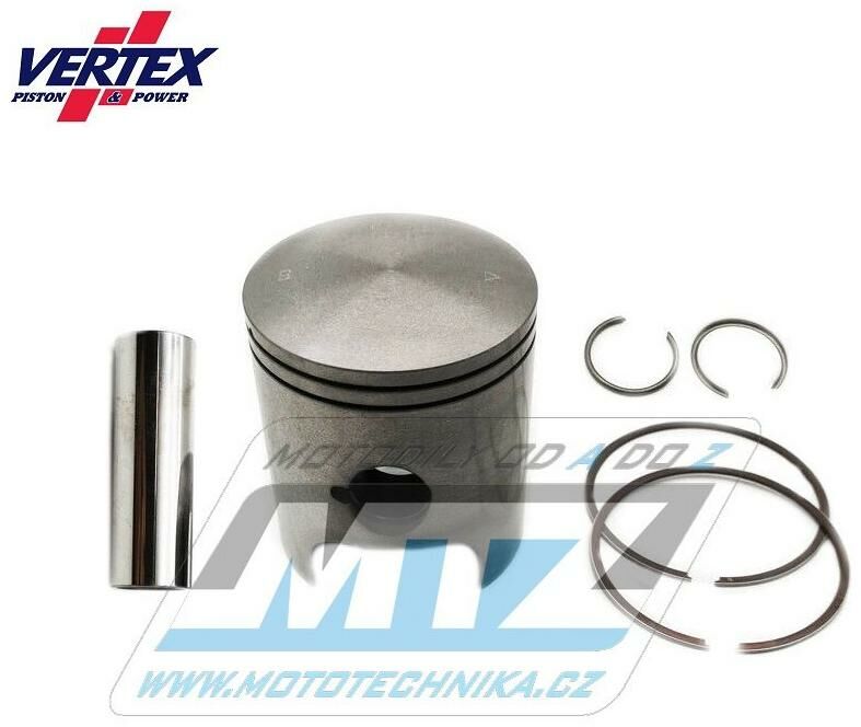 Písty Vertex jsou vysoce technicky inovativní a vysoce kvalitní písty vyráběné ze speciálního materiálu a obráběné z jednoho kusu na nejmodernějších CNC strojích v Itálii. - rozměr pístu = 54,02mm - komprese = standardní - povrchová úprava = molybden / teflon - varianta pístu = litý píst Vždy jsou dodávány jako pístní sada, tedy včetně pístních kroužků, čepů a pojistných kroužků té nejvyšší kvality. Tento píst nahrazuje originální díl (OEM Replacement): Aprilia AP0294744 Aprilia AP0295345 Aprilia AP0216139 Aprilia AP0215672 Aprilia AP0215825 Aprilia AP0945635 Všechny písty jsou tepelně zušlechťovány T5 nebo T6 kalením a popouštěním, a jsou opatřeny speciální povrchovou úpravou Molybden-Bisulfid. 2-taktní písty jsou výhradně lité písty (nejsou kované) - vyrobené z speciální hliníkové slitiny s obsahem samomazného křemíku (obsah 18%), který zajišťuje snížení tření mezi pístem a válcem pro zvýšení životnosti pístu i při závodním použití a odlehčení pístu při zachování potřebné pevnosti. 4-taktní písty jsou výhradně kované písty se zdokonalenou pevností a životností. Písty ve variantě RACE jsou dostupné jen pro některé modely a značky motocyklů a jejich konstrukce byla zdokonalena vývojovým oddělením značky Vertex za účelem dosažení kvalitnějšího pístu, zvýšené komprese, nižší hmotnosti a vyššího výkonu. Písty ve variantě PRO jsou kované písty se speciálním hliníko-křemičiným legováním, jejich konstrukce je speciálně upravena pro závodní použití a odlehčena (extra lehké písty), jsou vybaveny chromovanými pístními kroužky a extra odlehčeným čepem s dvojitým konusem. Značka VERTEX je výrobcem komponentů motoru nejvyšší světové úrovně od roku 1953. Sortiment zahrnuje komponenty pro motocykly, motokáry, skútry, vodní skútry, lodě, sněžné skútry, zahradní techniku, užitková vozidla, kompresory. Ve výrobě jsou používány nejmodernější technologie, jakostní výrobní normy a systémy řízení výrobních procesů. Od roku 1996 je Vertex dodavatelem do prvovýroby značky KTM! Výrobky značky Vertex jsou používány v prvovýrobě i dalších značek (Beta, Gas-Gas, Husqvarna, Sherco, Moto TM a další) a také závodními týmy nejvyšší světové úrovně (Kawasaki Pro Circuit, Honda HRC Racing, Yamaha Factory, Beta Factory, Moto3).