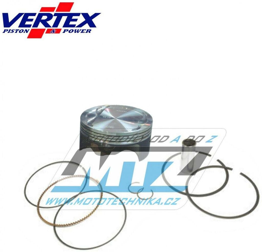 Písty Vertex jsou vysoce technicky inovativní a vysoce kvalitní písty vyráběné ze speciálního materiálu a obráběné z jednoho kusu na nejmodernějších CNC strojích v Itálii. - rozměr pístu = 94,95mm - komprese = standard (Replica) - varianta pístu = litý píst Vždy jsou dodávány jako pístní sada, tedy včetně pístních kroužků, čepů a pojistných kroužků té nejvyšší kvality. Tato sada nahrazuje originální díly (OEM Replacement): Gas-Gas MFS450316020 Gas-Gas MFS450316121 Gas-Gas MFS450316122 Gas-Gas MFS450316123 Gas-Gas MFS450316040 Všechny písty jsou tepelně zušlechťovány T5 nebo T6 kalením a popouštěním, a jsou opatřeny speciální povrchovou úpravou Molybden-Bisulfid. 2-taktní písty jsou výhradně lité písty (nejsou kované) - vyrobené z speciální hliníkové slitiny s obsahem samomazného křemíku (obsah 18%), který zajišťuje snížení tření mezi pístem a válcem pro zvýšení životnosti pístu i při závodním použití a odlehčení pístu při zachování potřebné pevnosti. 4-taktní písty jsou výhradně kované písty se zdokonalenou pevností a životností. Písty ve variantě RACE jsou dostupné jen pro některé modely a značky motocyklů a jejich konstrukce byla zdokonalena vývojovým oddělením značky Vertex za účelem dosažení kvalitnějšího pístu, zvýšené komprese, nižší hmotnosti a vyššího výkonu. Písty ve variantě PRO jsou kované písty se speciálním hliníko-křemičiným legováním, jejich konstrukce je speciálně upravena pro závodní použití a odlehčena (extra lehké písty), jsou vybaveny chromovanými pístními kroužky a extra odlehčeným čepem s dvojitým konusem. Značka VERTEX je výrobcem komponentů motoru nejvyšší světové úrovně od roku 1953. Sortiment zahrnuje komponenty pro motocykly, motokáry, skútry, vodní skútry, lodě, sněžné skútry, zahradní techniku, užitková vozidla, kompresory. Ve výrobě jsou používány nejmodernější technologie, jakostní výrobní normy a systémy řízení výrobních procesů. Od roku 1996 je Vertex dodavatelem do prvovýroby značky KTM! Výrobky značky Vertex jsou používány v prvovýrobě i dalších značek (Beta, Gas-Gas, Husqvarna, Sherco, Moto TM a další) a také závodními týmy nejvyšší světové úrovně (Kawasaki Pro Circuit, Honda HRC Racing, Yamaha Factory, Beta Factory, Moto3).