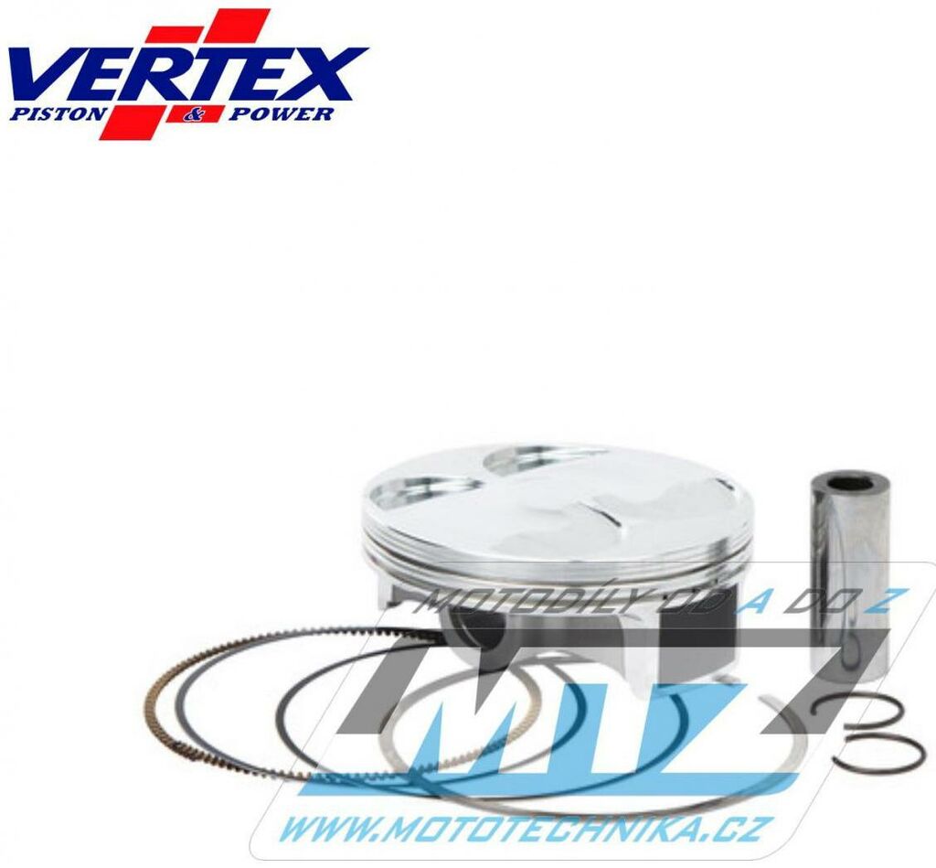 Písty Vertex jsou vysoce technicky inovativní a vysoce kvalitní písty vyráběné ze speciálního materiálu a obráběné z jednoho kusu na nejmodernějších CNC strojích v Itálii. - rozměr pístu = 79,97mm - komprese = 13.3:1 - povrchová úprava = molybden / teflon - varianta pístu = kovaný píst Vždy jsou dodávány jako pístní sada, tedy včetně pístních kroužků, čepů a pojistných kroužků té nejvyšší kvality. Tato sada nahrazuje originální díly (OEM Replacement): Honda 13101-KRN-A40 Honda 13111-KRN-A40 Honda 13111-KRN-A60 Honda 13011-KRN-A40 Honda 13112-MEE-000 Všechny písty jsou tepelně zušlechťovány T5 nebo T6 kalením a popouštěním, a jsou opatřeny speciální povrchovou úpravou Molybden-Bisulfid. 2-taktní písty jsou výhradně lité písty (nejsou kované) - vyrobené z speciální hliníkové slitiny s obsahem samomazného křemíku (obsah 18%), který zajišťuje snížení tření mezi pístem a válcem pro zvýšení životnosti pístu i při závodním použití a odlehčení pístu při zachování potřebné pevnosti. 4-taktní písty jsou výhradně kované písty se zdokonalenou pevností a životností. Písty ve variantě RACE jsou dostupné jen pro některé modely a značky motocyklů a jejich konstrukce byla zdokonalena vývojovým oddělením značky Vertex za účelem dosažení kvalitnějšího pístu, zvýšené komprese, nižší hmotnosti a vyššího výkonu. Písty ve variantě PRO jsou kované písty se speciálním hliníko-křemičiným legováním, jejich konstrukce je speciálně upravena pro závodní použití a odlehčena (extra lehké písty), jsou vybaveny chromovanými pístními kroužky a extra odlehčeným čepem s dvojitým konusem. Značka VERTEX je výrobcem komponentů motoru nejvyšší světové úrovně od roku 1953. Sortiment zahrnuje komponenty pro motocykly, motokáry, skútry, vodní skútry, lodě, sněžné skútry, zahradní techniku, užitková vozidla, kompresory. Ve výrobě jsou používány nejmodernější technologie, jakostní výrobní normy a systémy řízení výrobních procesů. Od roku 1996 je Vertex dodavatelem do prvovýroby značky KTM! Výrobky značky Vertex jsou používány v prvovýrobě i dalších značek (Beta, Gas-Gas, Husqvarna, Sherco, Moto TM a další) a také závodními týmy nejvyšší světové úrovně (Kawasaki Pro Circuit, Honda HRC Racing, Yamaha Factory, Beta Factory, Moto3).