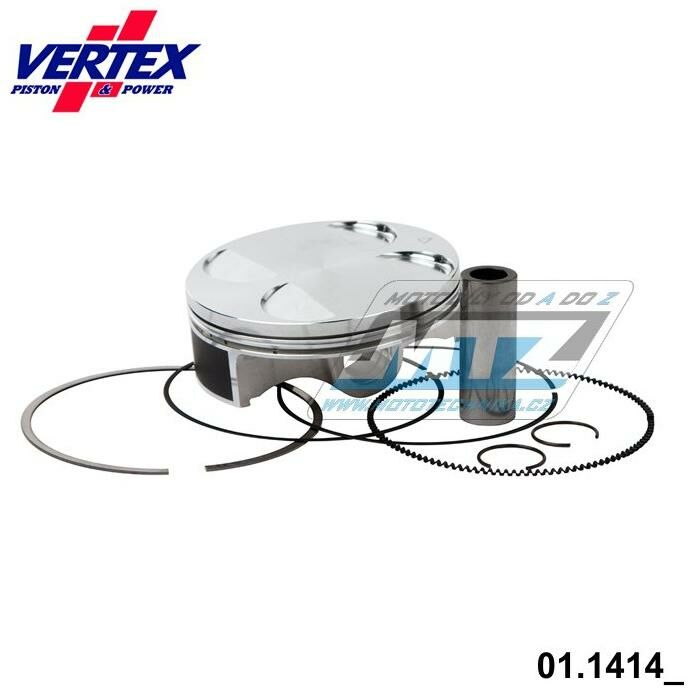 Písty Vertex jsou vysoce technicky inovativní a vysoce kvalitní písty vyráběné ze speciálního materiálu a obráběné z jednoho kusu na nejmodernějších CNC strojích v Itálii. - rozměr pístu = 95,95mm - komprese = standard (12,1:1) - povrchová úprava = molybden / teflon - varianta pístu = kovaný píst Vždy jsou dodávány jako pístní sada, tedy včetně pístních kroužků, čepů a pojistných kroužků té nejvyšší kvality. Tato pístní sada nahrazuje originální díl (OEM Replacement): Honda 13101-MEN-730 Honda 13111-MEN-730 Honda 13011-MEB-670 Honda 13112-MAT-000 Všechny písty jsou tepelně zušlechťovány T5 nebo T6 kalením a popouštěním, a jsou opatřeny speciální povrchovou úpravou Molybden-Bisulfid. 2-taktní písty jsou výhradně lité písty (nejsou kované) - vyrobené z speciální hliníkové slitiny s obsahem samomazného křemíku (obsah 18%), který zajišťuje snížení tření mezi pístem a válcem pro zvýšení životnosti pístu i při závodním použití a odlehčení pístu při zachování potřebné pevnosti. 4-taktní písty jsou výhradně kované písty se zdokonalenou pevností a životností. Písty ve variantě RACE jsou dostupné jen pro některé modely a značky motocyklů a jejich konstrukce byla zdokonalena vývojovým oddělením značky Vertex za účelem dosažení kvalitnějšího pístu, zvýšené komprese, nižší hmotnosti a vyššího výkonu. Písty ve variantě PRO jsou kované písty se speciálním hliníko-křemičitým legováním, jejich konstrukce je speciálně upravena pro závodní použití a odlehčena (extra lehké písty), jsou vybaveny chromovanými pístními kroužky a extra odlehčeným čepem s dvojitým konusem. Značka VERTEX je výrobcem komponentů motoru nejvyšší světové úrovně od roku 1953. Sortiment zahrnuje komponenty pro motocykly, motokáry, skútry, vodní skútry, lodě, sněžné skútry, zahradní techniku, užitková vozidla, kompresory. Ve výrobě jsou používány nejmodernější technologie, jakostní výrobní normy a systémy řízení výrobních procesů. Od roku 1996 je Vertex dodavatelem do prvovýroby značky KTM! Výrobky značky Vertex jsou používány v prvovýrobě i dalších značek (Beta, Gas-Gas, Husqvarna, Sherco, Moto TM a další) a také závodními týmy nejvyšší světové úrovně (Kawasaki Pro Circuit, Honda HRC Racing, Yamaha Factory, Beta Factory, Moto3).