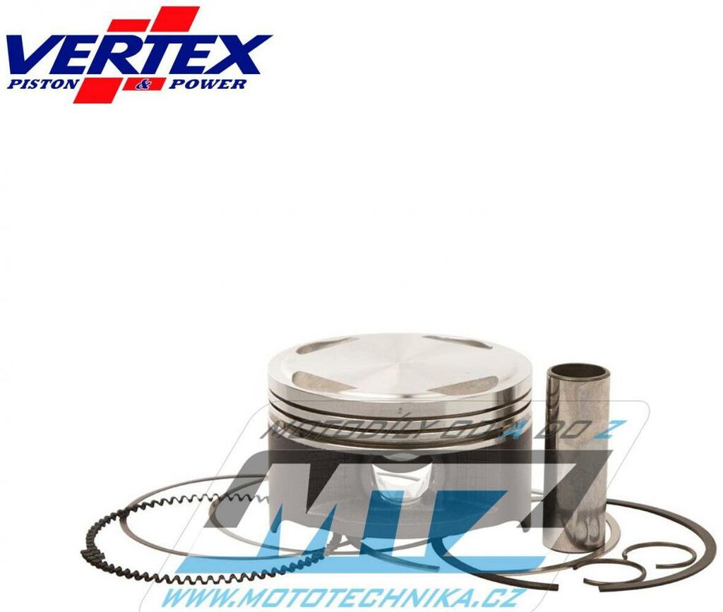 Písty Vertex jsou vysoce technicky inovativní a vysoce kvalitní písty vyráběné ze speciálního materiálu a obráběné z jednoho kusu na nejmodernějších CNC strojích v Itálii. - rozměr pístu = 86,97mm - komprese = 10.0:1 - povrchová úprava = molybden / teflon - varianta pístu = kovaný píst Vždy jsou dodávány jako pístní sada, tedy včetně pístních kroužků, čepů a pojistných kroužků té nejvyšší kvality. Tato pístní sada nahrazuje originální díl (OEM Replacement): Honda 13101-KCY-670 Honda 13102-KCY-670 Honda 13103-KCY-670 Honda 13011-KCY-670 Honda 13021-KCY-670 Honda 13031-KCY-670 Honda 13111-KCY-670 Honda 90601-KA5-000 Všechny písty jsou tepelně zušlechťovány T5 nebo T6 kalením a popouštěním, a jsou opatřeny speciální povrchovou úpravou Molybden-Bisulfid. 2-taktní písty jsou výhradně lité písty (nejsou kované) - vyrobené z speciální hliníkové slitiny s obsahem samomazného křemíku (obsah 18%), který zajišťuje snížení tření mezi pístem a válcem pro zvýšení životnosti pístu i při závodním použití a odlehčení pístu při zachování potřebné pevnosti. 4-taktní písty jsou výhradně kované písty se zdokonalenou pevností a životností. Písty ve variantě RACE jsou dostupné jen pro některé modely a značky motocyklů a jejich konstrukce byla zdokonalena vývojovým oddělením značky Vertex za účelem dosažení kvalitnějšího pístu, zvýšené komprese, nižší hmotnosti a vyššího výkonu. Písty ve variantě PRO jsou kované písty se speciálním hliníko-křemičitým legováním, jejich konstrukce je speciálně upravena pro závodní použití a odlehčena (extra lehké písty), jsou vybaveny chromovanými pístními kroužky a extra odlehčeným čepem s dvojitým konusem. Značka VERTEX je výrobcem komponentů motoru nejvyšší světové úrovně od roku 1953. Sortiment zahrnuje komponenty pro motocykly, motokáry, skútry, vodní skútry, lodě, sněžné skútry, zahradní techniku, užitková vozidla, kompresory. Ve výrobě jsou používány nejmodernější technologie, jakostní výrobní normy a systémy řízení výrobních procesů. Od roku 1996 je Vertex dodavatelem do prvovýroby značky KTM! Výrobky značky Vertex jsou používány v prvovýrobě i dalších značek (Beta, Gas-Gas, Husqvarna, Sherco, Moto TM a další) a také závodními týmy nejvyšší světové úrovně (Kawasaki Pro Circuit, Honda HRC Racing, Yamaha Factory, Beta Factory, Moto3).