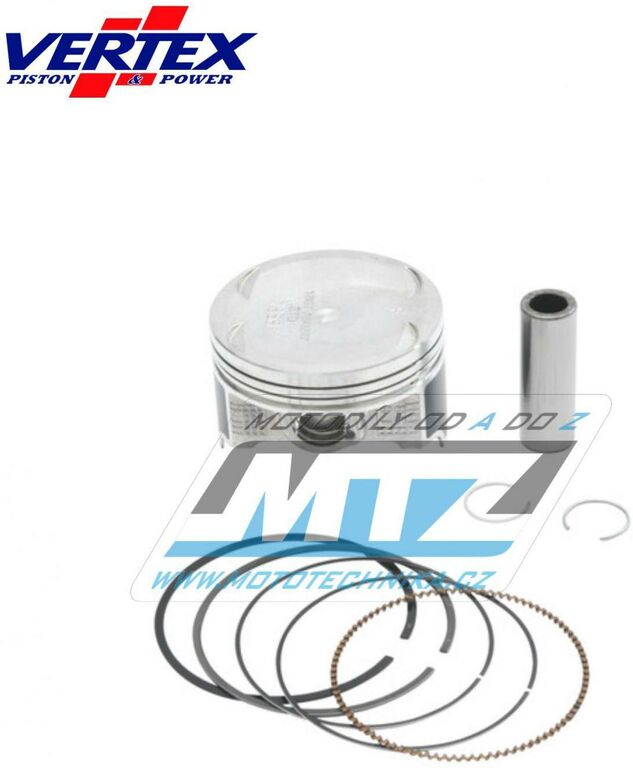 Písty Vertex jsou vysoce technicky inovativní a vysoce kvalitní písty vyráběné ze speciálního materiálu a obráběné z jednoho kusu na nejmodernějších CNC strojích v Itálii. - rozměr pístu = 82,46mm - komprese = 9.9:1 - povrchová úprava = molybden / teflon - varianta pístu = litý píst Vždy jsou dodávány jako pístní sada, tedy včetně pístních kroužků, čepů a pojistných kroužků té nejvyšší kvality. Tento píst nahrazuje originální díl (OEM Replacement): Kawasaki 13001-1658 Kawasaki 13029-0007 Kawasaki 13008-1215 Kawasaki 13025-0005 Kawasaki 13002-1060 Kawasaki 92033-1207 Všechny písty jsou tepelně zušlechťovány T5 nebo T6 kalením a popouštěním, a jsou opatřeny speciální povrchovou úpravou Molybden-Bisulfid. 2-taktní písty jsou výhradně lité písty (nejsou kované) - vyrobené z speciální hliníkové slitiny s obsahem samomazného křemíku (obsah 18%), který zajišťuje snížení tření mezi pístem a válcem pro zvýšení životnosti pístu i při závodním použití a odlehčení pístu při zachování potřebné pevnosti. 4-taktní písty jsou výhradně kované písty se zdokonalenou pevností a životností. Písty ve variantě RACE jsou dostupné jen pro některé modely a značky motocyklů a jejich konstrukce byla zdokonalena vývojovým oddělením značky Vertex za účelem dosažení kvalitnějšího pístu, zvýšené komprese, nižší hmotnosti a vyššího výkonu. Písty ve variantě PRO jsou kované písty se speciálním hliníko-křemičiným legováním, jejich konstrukce je speciálně upravena pro závodní použití a odlehčena (extra lehké písty), jsou vybaveny chromovanými pístními kroužky a extra odlehčeným čepem s dvojitým konusem. Značka VERTEX je výrobcem komponentů motoru nejvyšší světové úrovně od roku 1953. Sortiment zahrnuje komponenty pro motocykly, motokáry, skútry, vodní skútry, lodě, sněžné skútry, zahradní techniku, užitková vozidla, kompresory. Ve výrobě jsou používány nejmodernější technologie, jakostní výrobní normy a systémy řízení výrobních procesů. Od roku 1996 je Vertex dodavatelem do prvovýroby značky KTM! Výrobky značky Vertex jsou používány v prvovýrobě i dalších značek (Beta, Gas-Gas, Husqvarna, Sherco, Moto TM a další) a také závodními týmy nejvyšší světové úrovně (Kawasaki Pro Circuit, Honda HRC Racing, Yamaha Factory, Beta Factory, Moto3).