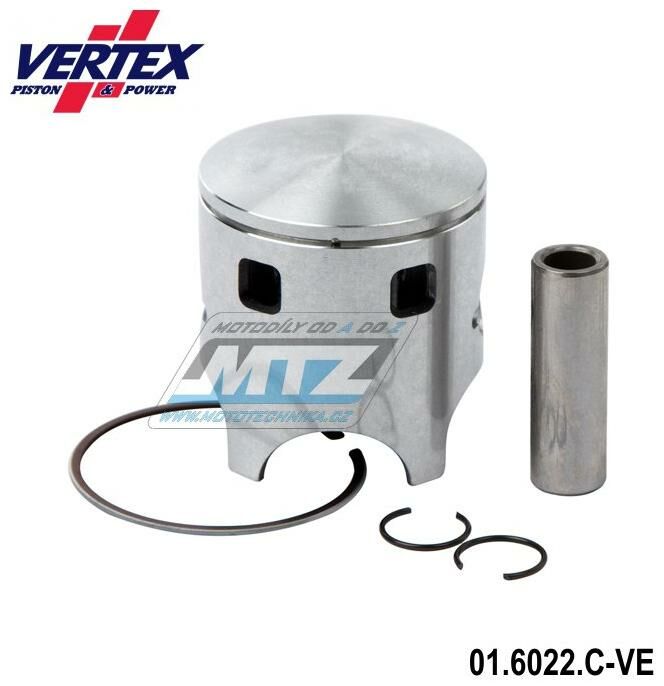 Písty Vertex jsou vysoce technicky inovativní a vysoce kvalitní písty vyráběné ze speciálního materiálu a obráběné z jednoho kusu na nejmodernějších CNC strojích v Itálii. - rozměr pístu = 44,96mm - komprese = standardní (Replica) - povrchová úprava = molybden / teflon - varianta pístu = litý píst Vždy jsou dodávány jako pístní sada, tedy včetně pístních kroužků, čepů a pojistných kroužků té nejvyšší kvality. Tento píst nahrazuje originální díl (OEM Replacement): KTM 46030007000A KTM 46030007000B KTM 46030030500 KTM 46030033000 KTM 46230033100 KTM 46030074000 KTM 45230074000 Husqvarna 46030007500A Husqvarna 46030030500 Husqvarna 46230033100 Husqvarna 45230074000 Všechny písty jsou tepelně zušlechťovány T5 nebo T6 kalením a popouštěním, a jsou opatřeny speciální povrchovou úpravou Molybden-Bisulfid. 2-taktní písty jsou výhradně lité písty (nejsou kované) - vyrobené z speciální hliníkové slitiny s obsahem samomazného křemíku (obsah 18%), který zajišťuje snížení tření mezi pístem a válcem pro zvýšení životnosti pístu i při závodním použití a odlehčení pístu při zachování potřebné pevnosti. 4-taktní písty jsou výhradně kované písty se zdokonalenou pevností a životností. Písty ve variantě RACE jsou dostupné jen pro některé modely a značky motocyklů a jejich konstrukce byla zdokonalena vývojovým oddělením značky Vertex za účelem dosažení kvalitnějšího pístu, zvýšené komprese, nižší hmotnosti a vyššího výkonu. Písty ve variantě PRO jsou kované písty se speciálním hliníko-křemičiným legováním, jejich konstrukce je speciálně upravena pro závodní použití a odlehčena (extra lehké písty), jsou vybaveny chromovanými pístními kroužky a extra odlehčeným čepem s dvojitým konusem. Značka VERTEX je výrobcem komponentů motoru nejvyšší světové úrovně od roku 1953. Sortiment zahrnuje komponenty pro motocykly, motokáry, skútry, vodní skútry, lodě, sněžné skútry, zahradní techniku, užitková vozidla, kompresory. Ve výrobě jsou používány nejmodernější technologie, jakostní výrobní normy a systémy řízení výrobních procesů. Od roku 1996 je Vertex dodavatelem do prvovýroby značky KTM! Výrobky značky Vertex jsou používány v prvovýrobě i dalších značek (Beta, Gas-Gas, Husqvarna, Sherco, Moto TM a další) a také závodními týmy nejvyšší světové úrovně (Kawasaki Pro Circuit, Honda HRC Racing, Yamaha Factory, Beta Factory, Moto3).