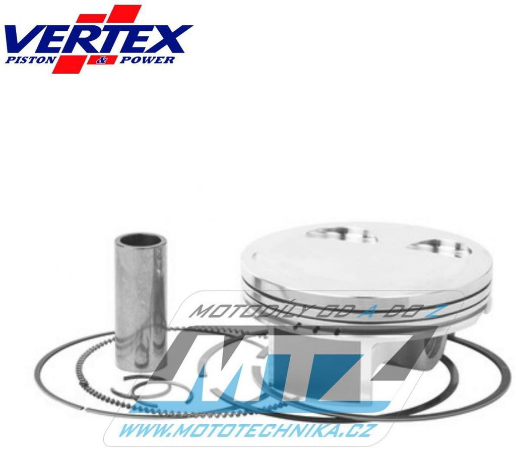 Písty Vertex jsou vysoce technicky inovativní a vysoce kvalitní písty vyráběné ze speciálního materiálu a obráběné z jednoho kusu na nejmodernějších CNC strojích v Itálii. - rozměr pístu = 94,97mm - komprese = 12.0:1 - povrchová úprava = molybden / teflon - varianta pístu = kovaný píst Vždy jsou dodávány jako pístní sada, tedy včetně pístních kroužků, čepů a pojistných kroužků té nejvyšší kvality. Tento píst nahrazuje originální díl (OEM Replacement): Yamaha 5TG-11631-00-00 Yamaha 5TG-11633-00-00 Yamaha 5TG-11631-12-00 Yamaha 5TG-11631-11-00 Yamaha 5TG-11633-10-00 Yamaha 5TG-11603-00-00 Yamaha 93450-22027-00 Všechny písty jsou tepelně zušlechťovány T5 nebo T6 kalením a popouštěním, a jsou opatřeny speciální povrchovou úpravou Molybden-Bisulfid. 2-taktní písty jsou výhradně lité písty (nejsou kované) - vyrobené z speciální hliníkové slitiny s obsahem samomazného křemíku (obsah 18%), který zajišťuje snížení tření mezi pístem a válcem pro zvýšení životnosti pístu i při závodním použití a odlehčení pístu při zachování potřebné pevnosti. 4-taktní písty jsou výhradně kované písty se zdokonalenou pevností a životností. Písty ve variantě RACE jsou dostupné jen pro některé modely a značky motocyklů a jejich konstrukce byla zdokonalena vývojovým oddělením značky Vertex za účelem dosažení kvalitnějšího pístu, zvýšené komprese, nižší hmotnosti a vyššího výkonu. Písty ve variantě PRO jsou kované písty se speciálním hliníko-křemičiným legováním, jejich konstrukce je speciálně upravena pro závodní použití a odlehčena (extra lehké písty), jsou vybaveny chromovanými pístními kroužky a extra odlehčeným čepem s dvojitým konusem. Značka VERTEX je výrobcem komponentů motoru nejvyšší světové úrovně od roku 1953. Sortiment zahrnuje komponenty pro motocykly, motokáry, skútry, vodní skútry, lodě, sněžné skútry, zahradní techniku, užitková vozidla, kompresory. Ve výrobě jsou používány nejmodernější technologie, jakostní výrobní normy a systémy řízení výrobních procesů. Od roku 1996 je Vertex dodavatelem do prvovýroby značky KTM! Výrobky značky Vertex jsou používány v prvovýrobě i dalších značek (Beta, Gas-Gas, Husqvarna, Sherco, Moto TM a další) a také závodními týmy nejvyšší světové úrovně (Kawasaki Pro Circuit, Honda HRC Racing, Yamaha Factory, Beta Factory, Moto3).