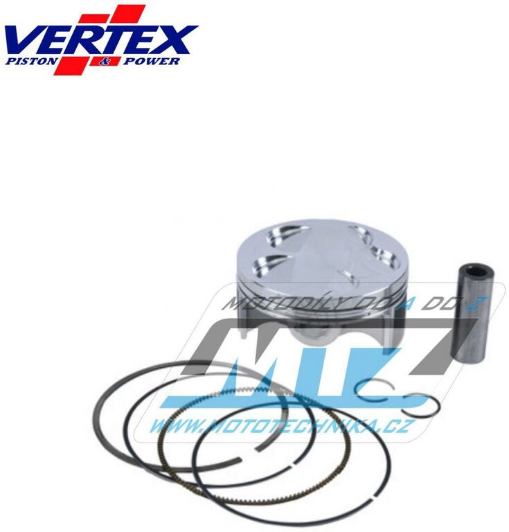 Písty Vertex jsou vysoce technicky inovativní a vysoce kvalitní písty vyráběné ze speciálního materiálu a obráběné z jednoho kusu na nejmodernějších CNC strojích v Itálii. - rozměr pístu = 79,97mm (Big Bore) - komprese = 13.5:1 - povrchová úprava = molybden / teflon - varianta pístu = kovaný píst Vždy jsou dodávány jako pístní sada, tedy včetně pístních kroužků, čepů a pojistných kroužků té nejvyšší kvality. Tato sada nahrazuje originální díly (OEM Replacement): Yamaha 5NL-11631-20-00 Yamaha 5NL-11603-00-00 Yamaha 5NL-11633-00-00 Yamaha 93420-16086-00 Všechny písty jsou tepelně zušlechťovány T5 nebo T6 kalením a popouštěním, a jsou opatřeny speciální povrchovou úpravou Molybden-Bisulfid. 2-taktní písty jsou výhradně lité písty (nejsou kované) - vyrobené z speciální hliníkové slitiny s obsahem samomazného křemíku (obsah 18%), který zajišťuje snížení tření mezi pístem a válcem pro zvýšení životnosti pístu i při závodním použití a odlehčení pístu při zachování potřebné pevnosti. 4-taktní písty jsou výhradně kované písty se zdokonalenou pevností a životností. Všechny písty (2tatkní i 4taktní) jsou tepelně zušlechťovány T5 nebo T6 kalením a popouštěním, a jsou opatřeny speciální povrchovou úpravou Molybden-Bisulfid. Písty ve variantě RACE jsou dostupné jen pro některé modely a značky motocyklů a jejich konstrukce byla zdokonalena vývojovým oddělením značky Vertex za účelem dosažení kvalitnějšího pístu, zvýšené komprese, nižší hmotnosti a vyššího výkonu. Písty ve variantě PRO jsou kované písty se speciálním hliníko-křemičiným legováním, jejich konstrukce je speciálně upravena pro závodní použití a odlehčena (extra lehké písty), jsou vybaveny chromovanými pístními kroužky a extra odlehčeným čepem s dvojitým konusem.