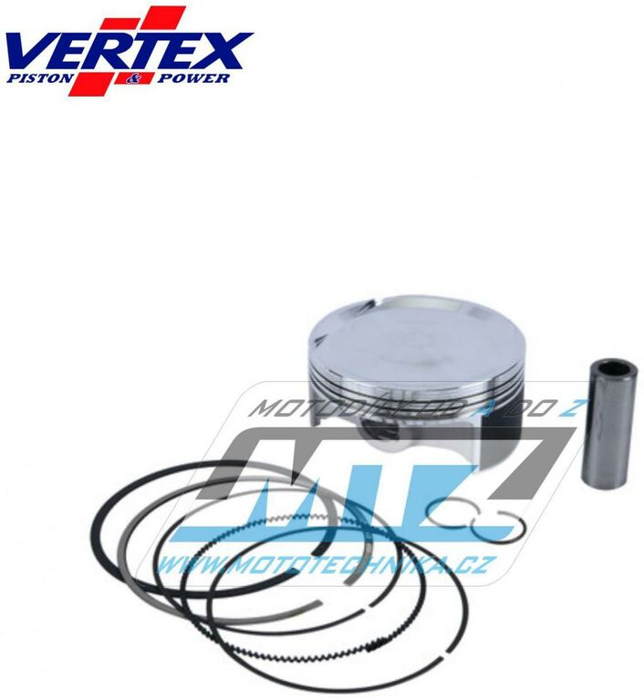 Písty Vertex jsou vysoce technicky inovativní a vysoce kvalitní písty vyráběné ze speciálního materiálu a obráběné z jednoho kusu na nejmodernějších CNC strojích v Itálii. - rozměr pístu = 97,97mm (Big Bore) - komprese = 10.5:1 - povrchová úprava = molybden / teflon - varianta pístu = kovaný píst Vždy jsou dodávány jako pístní sada, tedy včetně pístních kroužků, čepů a pojistných kroužků té nejvyšší kvality. Tato sada nahrazuje originální díly (OEM Replacement): Polaris 2205244 Polaris 2205245 Polaris 2204949 Polaris 3022358 Polaris 3022413 Všechny písty jsou tepelně zušlechťovány T5 nebo T6 kalením a popouštěním, a jsou opatřeny speciální povrchovou úpravou Molybden-Bisulfid. 2-taktní písty jsou výhradně lité písty (nejsou kované) - vyrobené z speciální hliníkové slitiny s obsahem samomazného křemíku (obsah 18%), který zajišťuje snížení tření mezi pístem a válcem pro zvýšení životnosti pístu i při závodním použití a odlehčení pístu při zachování potřebné pevnosti. 4-taktní písty jsou výhradně kované písty se zdokonalenou pevností a životností. Písty ve variantě RACE jsou dostupné jen pro některé modely a značky motocyklů a jejich konstrukce byla zdokonalena vývojovým oddělením značky Vertex za účelem dosažení kvalitnějšího pístu, zvýšené komprese, nižší hmotnosti a vyššího výkonu. Písty ve variantě PRO jsou kované písty se speciálním hliníko-křemičiným legováním, jejich konstrukce je speciálně upravena pro závodní použití a odlehčena (extra lehké písty), jsou vybaveny chromovanými pístními kroužky a extra odlehčeným čepem s dvojitým konusem. Značka VERTEX je výrobcem komponentů motoru nejvyšší světové úrovně od roku 1953. Sortiment zahrnuje komponenty pro motocykly, motokáry, skútry, vodní skútry, lodě, sněžné skútry, zahradní techniku, užitková vozidla, kompresory. Ve výrobě jsou používány nejmodernější technologie, jakostní výrobní normy a systémy řízení výrobních procesů. Od roku 1996 je Vertex dodavatelem do prvovýroby značky KTM! Výrobky značky Vertex jsou používány v prvovýrobě i dalších značek (Beta, Gas-Gas, Husqvarna, Sherco, Moto TM a další) a také závodními týmy nejvyšší světové úrovně (Kawasaki Pro Circuit, Honda HRC Racing, Yamaha Factory, Beta Factory, Moto3).