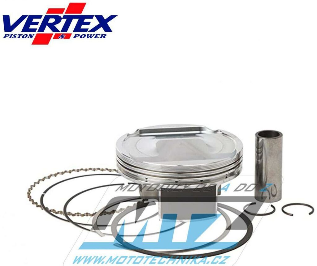 Písty Vertex jsou vysoce technicky inovativní a vysoce kvalitní písty vyráběné ze speciálního materiálu a obráběné z jednoho kusu na nejmodernějších CNC strojích v Itálii. - rozměr pístu = 92,96mm - komprese = 10.6:1 - povrchová úprava = molybden / teflon - varianta pístu = kovaný píst Vždy jsou dodávány jako pístní sada, tedy včetně pístních kroužků, čepů a pojistných kroužků té nejvyšší kvality. Tato sada nahrazuje originální díly (OEM Replacement): Polaris 2204637 Polaris 2204509 Polaris 3022190 Polaris 3022328 Všechny písty jsou tepelně zušlechťovány T5 nebo T6 kalením a popouštěním, a jsou opatřeny speciální povrchovou úpravou Molybden-Bisulfid. 2-taktní písty jsou výhradně lité písty (nejsou kované) - vyrobené z speciální hliníkové slitiny s obsahem samomazného křemíku (obsah 18%), který zajišťuje snížení tření mezi pístem a válcem pro zvýšení životnosti pístu i při závodním použití a odlehčení pístu při zachování potřebné pevnosti. 4-taktní písty jsou výhradně kované písty se zdokonalenou pevností a životností. Písty ve variantě RACE jsou dostupné jen pro některé modely a značky motocyklů a jejich konstrukce byla zdokonalena vývojovým oddělením značky Vertex za účelem dosažení kvalitnějšího pístu, zvýšené komprese, nižší hmotnosti a vyššího výkonu. Písty ve variantě PRO jsou kované písty se speciálním hliníko-křemičiným legováním, jejich konstrukce je speciálně upravena pro závodní použití a odlehčena (extra lehké písty), jsou vybaveny chromovanými pístními kroužky a extra odlehčeným čepem s dvojitým konusem. Značka VERTEX je výrobcem komponentů motoru nejvyšší světové úrovně od roku 1953. Sortiment zahrnuje komponenty pro motocykly, motokáry, skútry, vodní skútry, lodě, sněžné skútry, zahradní techniku, užitková vozidla, kompresory. Ve výrobě jsou používány nejmodernější technologie, jakostní výrobní normy a systémy řízení výrobních procesů. Od roku 1996 je Vertex dodavatelem do prvovýroby značky KTM! Výrobky značky Vertex jsou používány v prvovýrobě i dalších značek (Beta, Gas-Gas, Husqvarna, Sherco, Moto TM a další) a také závodními týmy nejvyšší světové úrovně (Kawasaki Pro Circuit, Honda HRC Racing, Yamaha Factory, Beta Factory, Moto3).