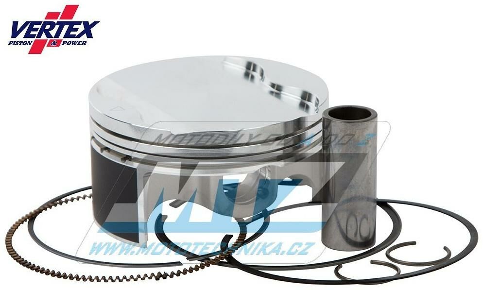 Písty Vertex jsou vysoce technicky inovativní a vysoce kvalitní písty vyráběné ze speciálního materiálu a obráběné z jednoho kusu na nejmodernějších CNC strojích v Itálii. rozměr pístu = 89,98mm komprese = 12.1:1 povrchová úprava = molybden / teflon varianta pístu = kovaný píst Vždy jsou dodávány jako pístní sada, tedy včetně pístních kroužků, čepů a pojistných kroužků té nejvyšší kvality. Tento píst nahrazuje originální díl (OEM Replacement): Suzuki 12111-29F00-0F0 Suzuki 12151-24F10 Suzuki 12140-29F00 Suzuki 09381-20004 Kawasaki 13001-S006 Kawasaki 13002-S006 Kawasaki 13008-S008 Kawasaki 92033-S040 Všechny písty jsou tepelně zušlechťovány T5 nebo T6 kalením a popouštěním, a jsou opatřeny speciální povrchovou úpravou Molybden-Bisulfid. 2-taktní písty jsou výhradně lité písty (nejsou kované) - vyrobené z speciální hliníkové slitiny s obsahem samomazného křemíku (obsah 18%), který zajišťuje snížení tření mezi pístem a válcem pro zvýšení životnosti pístu i při závodním použití a odlehčení pístu při zachování potřebné pevnosti. 4-taktní písty jsou výhradně kované písty se zdokonalenou pevností a životností. Písty ve variantě RACE jsou dostupné jen pro některé modely a značky motocyklů a jejich konstrukce byla zdokonalena vývojovým oddělením značky Vertex za účelem dosažení kvalitnějšího pístu, zvýšené komprese, nižší hmotnosti a vyššího výkonu. Písty ve variantě PRO jsou kované písty se speciálním hliníko-křemičiným legováním, jejich konstrukce je speciálně upravena pro závodní použití a odlehčena (extra lehké písty), jsou vybaveny chromovanými pístními kroužky a extra odlehčeným čepem s dvojitým konusem. Značka VERTEX je výrobcem komponentů motoru nejvyšší světové úrovně od roku 1953. Sortiment zahrnuje komponenty pro motocykly, motokáry, skútry, vodní skútry, lodě, sněžné skútry, zahradní techniku, užitková vozidla, kompresory. Ve výrobě jsou používány nejmodernější technologie, jakostní výrobní normy a systémy řízení výrobních procesů. Od roku 1996 je Vertex dodavatelem do prvovýroby značky KTM! Výrobky značky Vertex jsou používány v prvovýrobě i dalších značek (Beta, Gas-Gas, Husqvarna, Sherco, Moto TM a další) a také závodními týmy nejvyšší světové úrovně (Kawasaki Pro Circuit, Honda HRC Racing, Yamaha Factory, Beta Factory, Moto3).