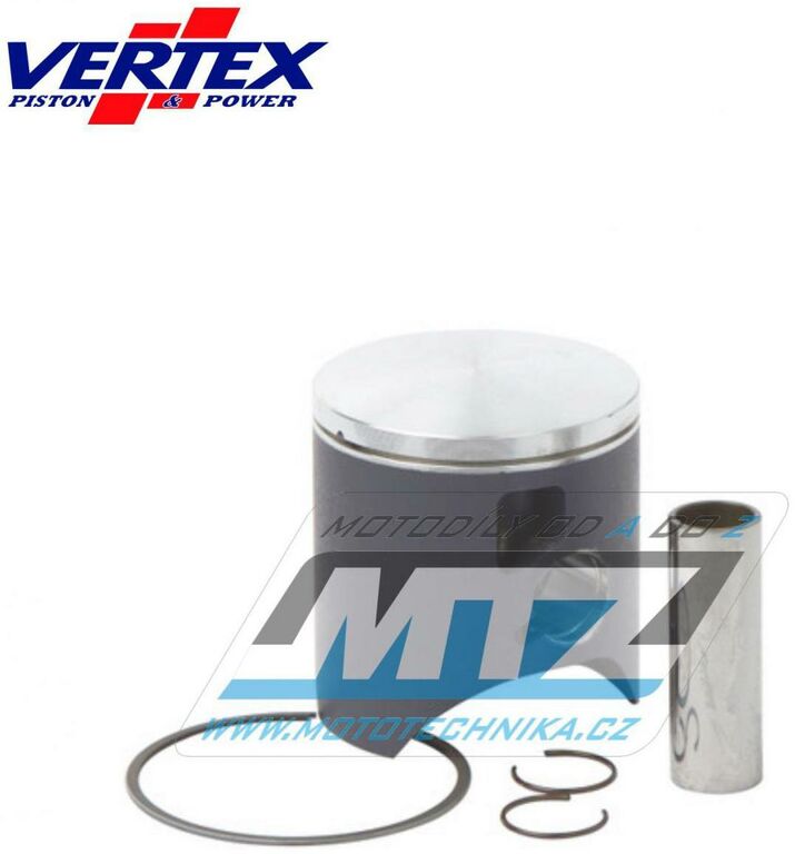 Písty Vertex jsou vysoce technicky inovativní a vysoce kvalitní písty vyráběné ze speciálního materiálu a obráběné z jednoho kusu na nejmodernějších CNC strojích v Itálii. - rozměr pístu = 53,95mm - komprese = standard - povrchová úprava = molybden / teflon - varianta pístu = litý píst Vždy jsou dodávány jako pístní sada, tedy včetně pístních kroužků, čepů a pojistných kroužků té nejvyšší kvality. Tento píst nahrazuje originální díl (OEM Replacement): Suzuki 12110-36E30-0F0 Suzuki 12110-36E31-0F0 Suzuki 12110-36F00-0F0 Suzuki 12110-36F10-0F0 Suzuki 12110-36F00-0F0 Suzuki 12151-01B41 Suzuki 12141-36E01 Suzuki 12141-36F00 Suzuki 09381-15001 Všechny písty jsou tepelně zušlechťovány T5 nebo T6 kalením a popouštěním, a jsou opatřeny speciální povrchovou úpravou Molybden-Bisulfid. 2-taktní písty jsou výhradně lité písty (nejsou kované) - vyrobené z speciální hliníkové slitiny s obsahem samomazného křemíku (obsah 18%), který zajišťuje snížení tření mezi pístem a válcem pro zvýšení životnosti pístu i při závodním použití a odlehčení pístu při zachování potřebné pevnosti. 4-taktní písty jsou výhradně kované písty se zdokonalenou pevností a životností. Písty ve variantě RACE jsou dostupné jen pro některé modely a značky motocyklů a jejich konstrukce byla zdokonalena vývojovým oddělením značky Vertex za účelem dosažení kvalitnějšího pístu, zvýšené komprese, nižší hmotnosti a vyššího výkonu. Písty ve variantě PRO jsou kované písty se speciálním hliníko-křemičiným legováním, jejich konstrukce je speciálně upravena pro závodní použití a odlehčena (extra lehké písty), jsou vybaveny chromovanými pístními kroužky a extra odlehčeným čepem s dvojitým konusem. Značka VERTEX je výrobcem komponentů motoru nejvyšší světové úrovně od roku 1953. Sortiment zahrnuje komponenty pro motocykly, motokáry, skútry, vodní skútry, lodě, sněžné skútry, zahradní techniku, užitková vozidla, kompresory. Ve výrobě jsou používány nejmodernější technologie, jakostní výrobní normy a systémy řízení výrobních procesů. Od roku 1996 je Vertex dodavatelem do prvovýroby značky KTM! Výrobky značky Vertex jsou používány v prvovýrobě i dalších značek (Beta, Gas-Gas, Husqvarna, Sherco, Moto TM a další) a také závodními týmy nejvyšší světové úrovně (Kawasaki Pro Circuit, Honda HRC Racing, Yamaha Factory, Beta Factory, Moto3).