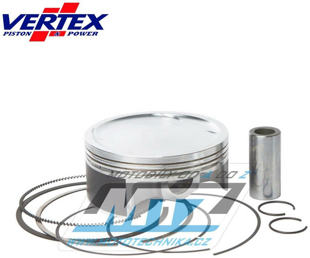Písty Vertex jsou vysoce technicky inovativní a vysoce kvalitní písty vyráběné ze speciálního materiálu a obráběné z jednoho kusu na nejmodernějších CNC strojích v Itálii. - rozměr pístu = 104,95mm (Big Bore) - komprese = 9.2:1 - povrchová úprava = molybden / teflon - varianta pístu = kovaný píst Vždy jsou dodávány jako pístní sada, tedy včetně pístních kroužků, čepů a pojistných kroužků té nejvyšší kvality. Tento píst nahrazuje originální díl (OEM Replacement): Yamaha 1S3-11631-00-00 Yamaha 1S3-11631-10-00 Yamaha 5VK-11633-00-00 Yamaha 1S3-11603-10-00 Yamaha 93450-24154-00 Všechny písty jsou tepelně zušlechťovány T5 nebo T6 kalením a popouštěním, a jsou opatřeny speciální povrchovou úpravou Molybden-Bisulfid. 2-taktní písty jsou výhradně lité písty (nejsou kované) - vyrobené z speciální hliníkové slitiny s obsahem samomazného křemíku (obsah 18%), který zajišťuje snížení tření mezi pístem a válcem pro zvýšení životnosti pístu i při závodním použití a odlehčení pístu při zachování potřebné pevnosti. 4-taktní písty jsou výhradně kované písty se zdokonalenou pevností a životností. Písty ve variantě RACE jsou dostupné jen pro některé modely a značky motocyklů a jejich konstrukce byla zdokonalena vývojovým oddělením značky Vertex za účelem dosažení kvalitnějšího pístu, zvýšené komprese, nižší hmotnosti a vyššího výkonu. Písty ve variantě PRO jsou kované písty se speciálním hliníko-křemičiným legováním, jejich konstrukce je speciálně upravena pro závodní použití a odlehčena (extra lehké písty), jsou vybaveny chromovanými pístními kroužky a extra odlehčeným čepem s dvojitým konusem. Značka VERTEX je výrobcem komponentů motoru nejvyšší světové úrovně od roku 1953. Sortiment zahrnuje komponenty pro motocykly, motokáry, skútry, vodní skútry, lodě, sněžné skútry, zahradní techniku, užitková vozidla, kompresory. Ve výrobě jsou používány nejmodernější technologie, jakostní výrobní normy a systémy řízení výrobních procesů. Od roku 1996 je Vertex dodavatelem do prvovýroby značky KTM! Výrobky značky Vertex jsou používány v prvovýrobě i dalších značek (Beta, Gas-Gas, Husqvarna, Sherco, Moto TM a další) a také závodními týmy nejvyšší světové úrovně (Kawasaki Pro Circuit, Honda HRC Racing, Yamaha Factory, Beta Factory, Moto3).