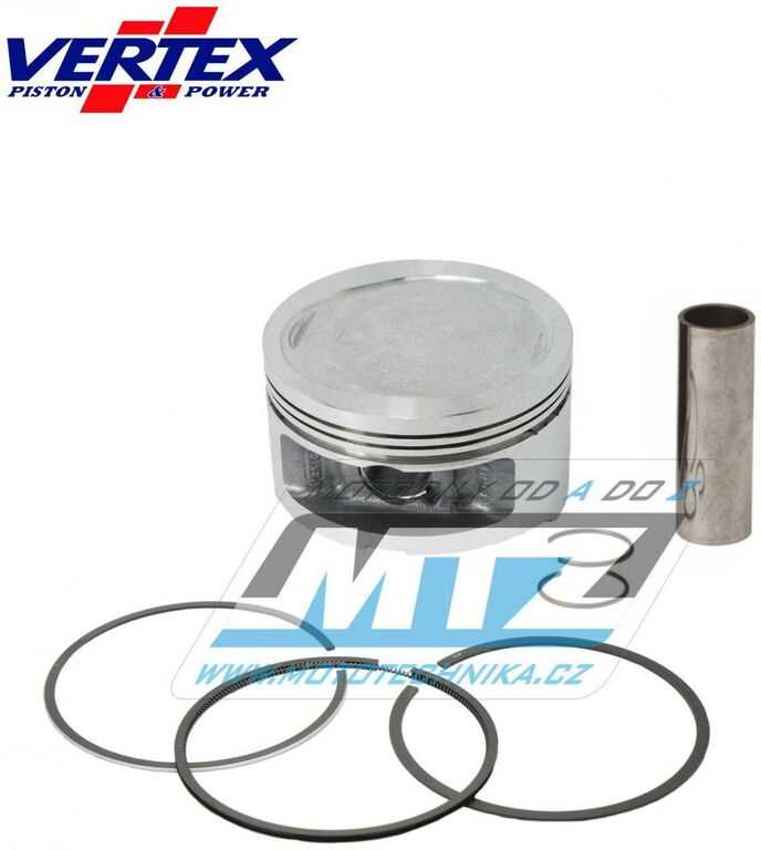 Písty Vertex jsou vysoce technicky inovativní a vysoce kvalitní písty vyráběné ze speciálního materiálu a obráběné z jednoho kusu na nejmodernějších CNC strojích v Itálii. - pro vrtání válce = 70,00mm - komprese = standard (Replica) - varianta pístu = kovaný píst Vždy jsou dodávány jako pístní sada, tedy včetně pístních kroužků, čepů a pojistných kroužků té nejvyšší kvality. Tato sada nahrazuje originální díly (OEM Replacement): Yamaha 4HC116380100 Yamaha 4HC116360100 Yamaha 4HC116310100 Yamaha 4JH116330000 Yamaha 4HC116030000 Yamaha 4HC116050000 Yamaha 4HC116070000 Yamaha 904681206900 Všechny písty jsou tepelně zušlechťovány T5 nebo T6 kalením a popouštěním, a jsou opatřeny speciální povrchovou úpravou Molybden-Bisulfid. 2-taktní písty jsou výhradně lité písty (nejsou kované) - vyrobené z speciální hliníkové slitiny s obsahem samomazného křemíku (obsah 18%), který zajišťuje snížení tření mezi pístem a válcem pro zvýšení životnosti pístu i při závodním použití a odlehčení pístu při zachování potřebné pevnosti. 4-taktní písty jsou výhradně kované písty se zdokonalenou pevností a životností. Písty ve variantě RACE jsou dostupné jen pro některé modely a značky motocyklů a jejich konstrukce byla zdokonalena vývojovým oddělením značky Vertex za účelem dosažení kvalitnějšího pístu, zvýšené komprese, nižší hmotnosti a vyššího výkonu. Písty ve variantě PRO jsou kované písty se speciálním hliníko-křemičiným legováním, jejich konstrukce je speciálně upravena pro závodní použití a odlehčena (extra lehké písty), jsou vybaveny chromovanými pístními kroužky a extra odlehčeným čepem s dvojitým konusem. Značka VERTEX je výrobcem komponentů motoru nejvyšší světové úrovně od roku 1953. Sortiment zahrnuje komponenty pro motocykly, motokáry, skútry, vodní skútry, lodě, sněžné skútry, zahradní techniku, užitková vozidla, kompresory. Ve výrobě jsou používány nejmodernější technologie, jakostní výrobní normy a systémy řízení výrobních procesů. Od roku 1996 je Vertex dodavatelem do prvovýroby značky KTM! Výrobky značky Vertex jsou používány v prvovýrobě i dalších značek (Beta, Gas-Gas, Husqvarna, Sherco, Moto TM a další) a také závodními týmy nejvyšší světové úrovně (Kawasaki Pro Circuit, Honda HRC Racing, Yamaha Factory, Beta Factory, Moto3).