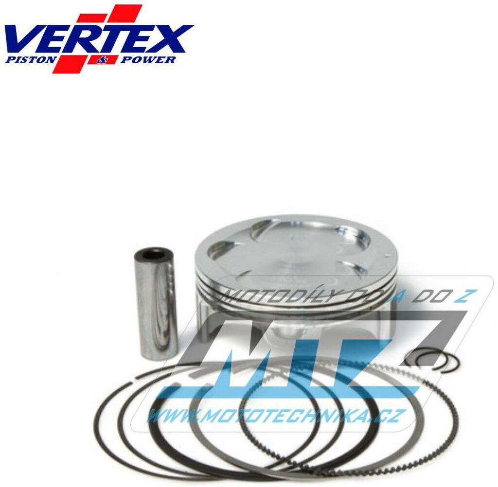 Písty Vertex jsou vysoce technicky inovativní a vysoce kvalitní písty vyráběné ze speciálního materiálu a obráběné z jednoho kusu na nejmodernějších CNC strojích v Itálii. - rozměr pístu = 96,97mm (Big Bore) - komprese = 12.5:1 - povrchová úprava = molybden / teflon - varianta pístu = kovaný píst Vždy jsou dodávány jako pístní sada, tedy včetně pístních kroužků, čepů a pojistných kroužků té nejvyšší kvality. Tato sada nahrazuje originální díly (OEM Replacement): Yamaha 2S2-11631-20-00 Yamaha 5TA-11633-00-00 Yamaha 5JG-11603-00-00 Yamaha 93420-18082-00 Všechny písty jsou tepelně zušlechťovány T5 nebo T6 kalením a popouštěním, a jsou opatřeny speciální povrchovou úpravou Molybden-Bisulfid. 2-taktní písty jsou výhradně lité písty (nejsou kované) - vyrobené z speciální hliníkové slitiny s obsahem samomazného křemíku (obsah 18%), který zajišťuje snížení tření mezi pístem a válcem pro zvýšení životnosti pístu i při závodním použití a odlehčení pístu při zachování potřebné pevnosti. 4-taktní písty jsou výhradně kované písty se zdokonalenou pevností a životností. Všechny písty (2tatkní i 4taktní) jsou tepelně zušlechťovány T5 nebo T6 kalením a popouštěním, a jsou opatřeny speciální povrchovou úpravou Molybden-Bisulfid. Písty ve variantě RACE jsou dostupné jen pro některé modely a značky motocyklů a jejich konstrukce byla zdokonalena vývojovým oddělením značky Vertex za účelem dosažení kvalitnějšího pístu, zvýšené komprese, nižší hmotnosti a vyššího výkonu. Písty ve variantě PRO jsou kované písty se speciálním hliníko-křemičiným legováním, jejich konstrukce je speciálně upravena pro závodní použití a odlehčena (extra lehké písty), jsou vybaveny chromovanými pístními kroužky a extra odlehčeným čepem s dvojitým konusem.