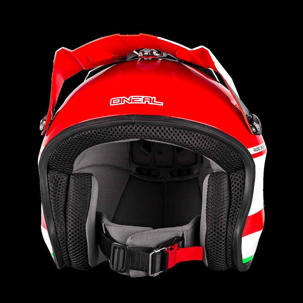 Přilba pro trial a skútr. Lehká konstrukce ze sklolaminátu. Vyjímatelné. pratelné, pot absorbující polstrování. Výškově nastavitelný kšilt. Fidlock® magnetické zapínání, snadné zapínání a rozepínání jednou rukou. Splňuje normy DOT a ECE 22.05.