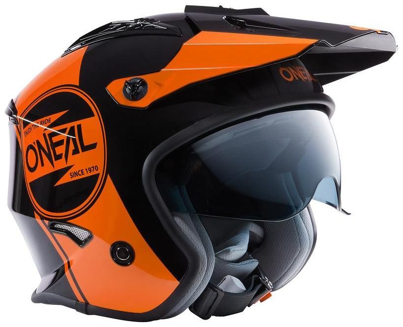 Přilba pro trial a skútr. Lehká konstrukce z ABS. Zapínání na přezku. Větrací otvory. Vyjímatelné. pratelné, pot absorbující polstrování. Výškově nastavitelný kšilt. Splňuje normu ECE 22.05.
