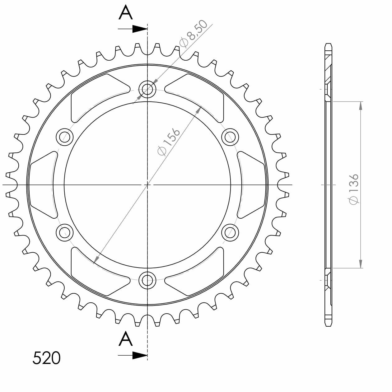 Řetězová rozeta SUPERSPROX RFE-1512:44-BLK černý 44 zubů, 520 HUSQVARNA SMR 630 Seel Replica 2004-2005