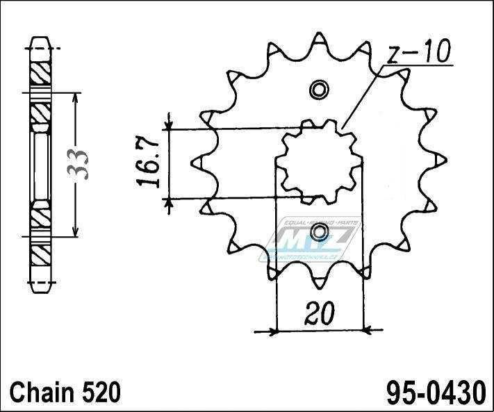 Řetězové kolečko (pastorek) 95-0430-13zubů ESJOT - Kawasaki Off Road KXF250 N1,N2 + Suzuki Off Road RMZ250K4,K5,K6 + RMZ250K6 + Suzuki Road GS250T T/X + GSX250ET,EX + GSX250ET,EX + GSX250E,ESZ,SZ,ED,E 95-0430-13-ES