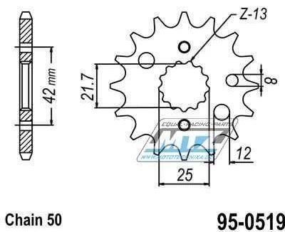 Kolečko řetězové (pastorek) 0519-15zubů ESJOT - Kawasaki ZZR500 + ZZR600 + ZXR750 + ZXR750R + VN800 + ZX9R + VN800 95-0519-15-ES