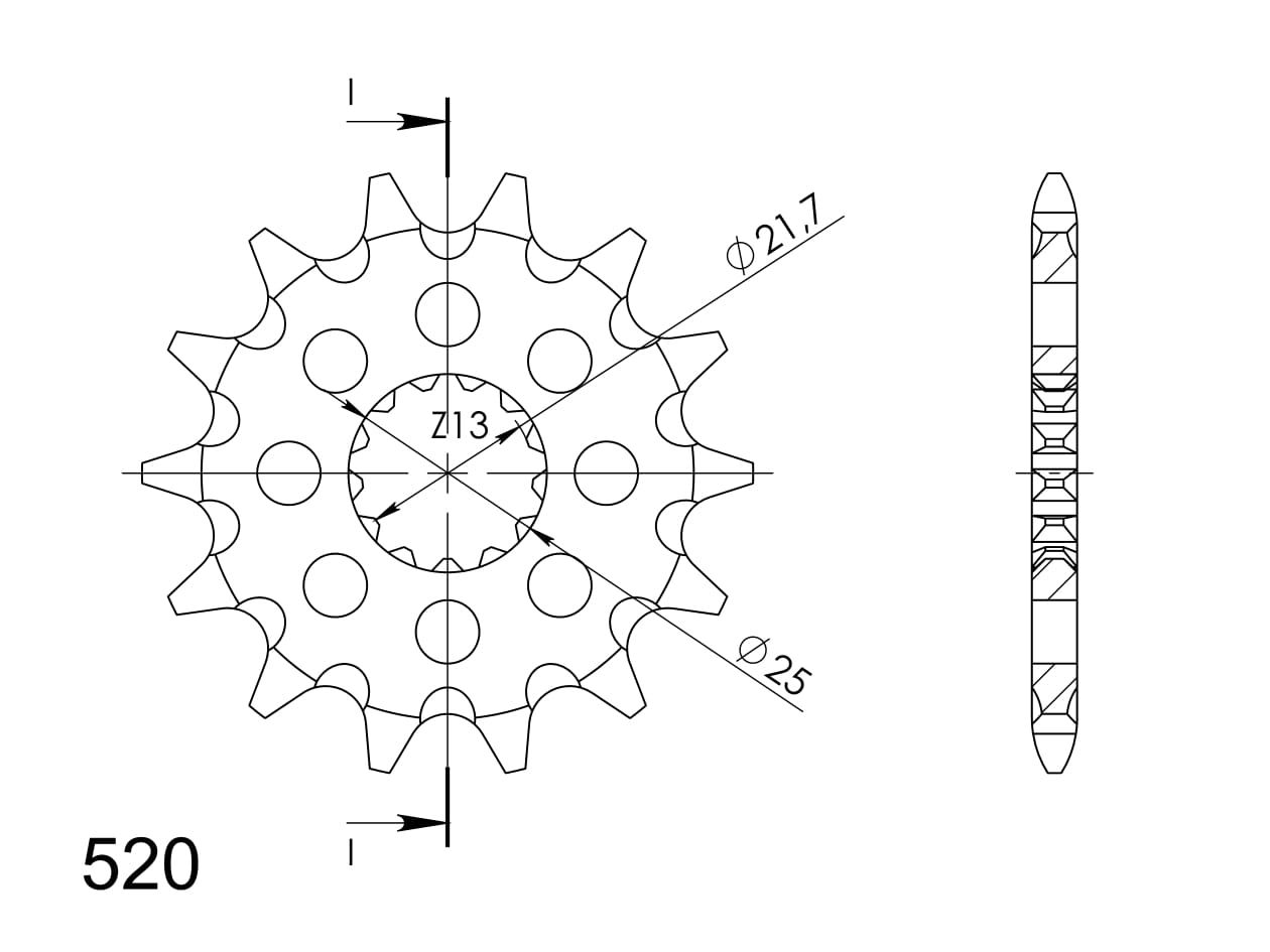 Pevnější zuby = vyšší životnost řetězové sady až o 10%. Kolečko 12z, řetěz 520.