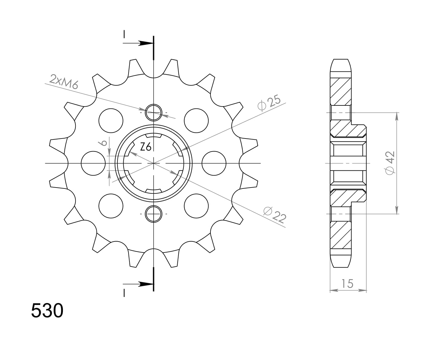 Pevnější zuby = vyšší životnost řetězové sady až o 10%. Kolečko 16z, řetěz 530.