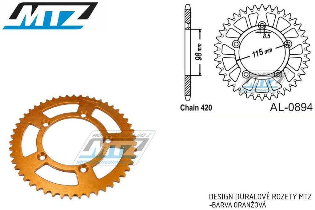 Rozeta řetězová (převodník) Dural 0894-47zubů MTZ oranžová - KTM 65SX / 02-24 + 60SX / 97-01 + Husqvarna TC65 / 17-24 + Gas-Gas MC65 AL-0894-47-E7