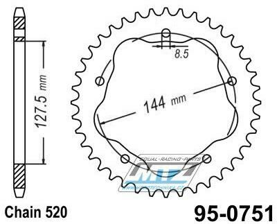 Rozeta ocelová (převodník) 0751-36zubů MTZ - Ducati 748 + 800 Monster S2R + 848 Evo + 848 Streetfighter + 916 Strada Biposto + 916 Strada SPS + 950 Hypermotard 95-0751-36
