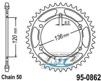 Rozeta ocelová (převodník) 0862-46zubů MTZ - Yamaha FJ600 + FZ600 + RD500LC + RZV500R + XJ400Z + XJ600 + YX600C Radian 95-0862-46