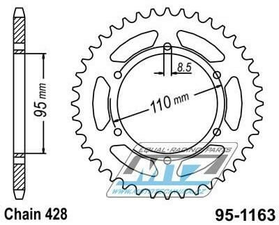 Rozeta ocelová (převodník) 1163-45zubů MTZ - Cagiva 125 SXT Aletta Rossa WSX Trail / 83-87 + 125 Elefant / 84-88 95-1163-45